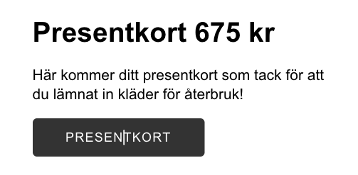 När jag har varit inne på klädbutiken MQ har jag observerat att de har en avdelning med second hand-kläder som de säljer. Jag blev nyfiken på detta och frågade hur det fungerade. Nu har jag själv provat att lämna in åtta stycken klädesplagg och jag fick ett presentkort på 675 kr som jag kunde handla för på MQ. Nu har jag klädköpstopp så presentkortet använde jag för att köpa en present till en person som snart fyller år.